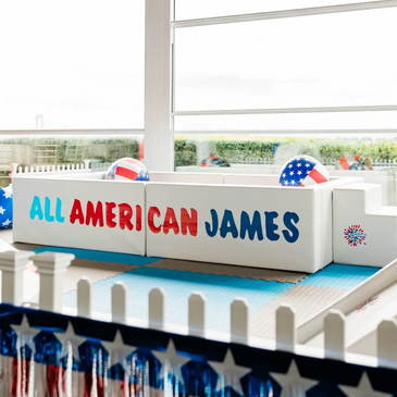The perfect add on to this set up is a few balloon garlands and a personalized sticker to pop your theme!